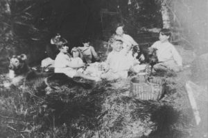 29 Picnic Dog, [?], Jenny, Catherine, Sam, Nancy (behind), David. [c. 1928]