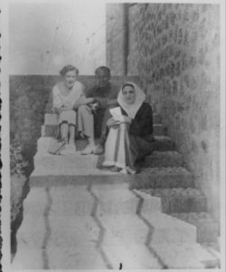 03 Dorothy Hutchinson, Ward Hutchinson and Laura Riding, on Canellun front steps, Christmas 1934.