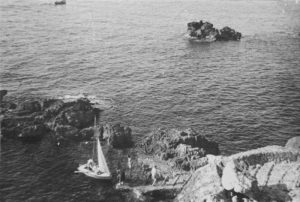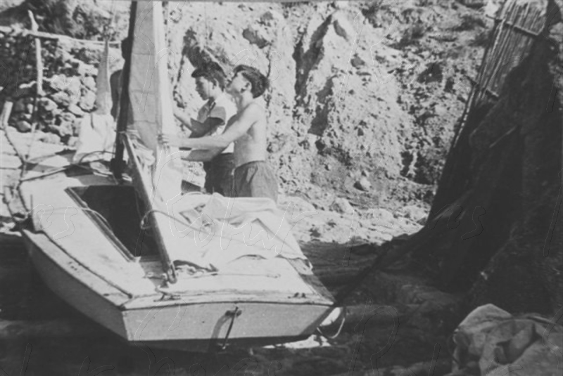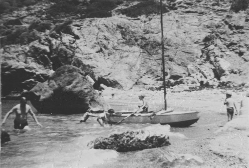 32 - 1954: Pago-Pago sailing into Can Floque boat-house (leased by Graves). Deyá.