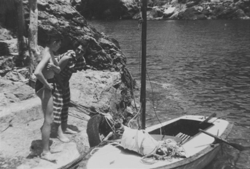 31 - 1954: William with Diana Graves and Pago-Pago. Cala Deyá.