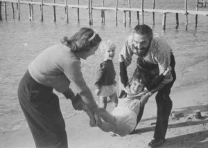 19 - 1951: Graves with Beryl and Juan on Eastbourne beach.